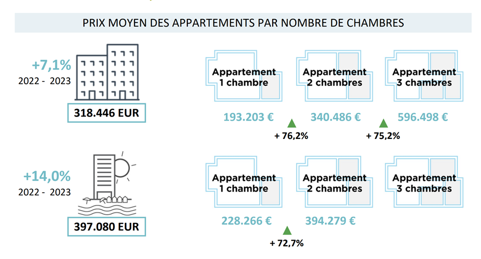Prix moyen d’un appartement à la côte: 318.446 euros (+7,1%)